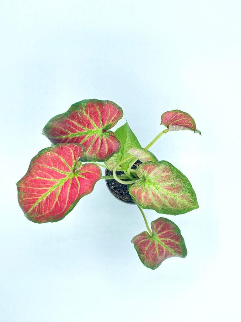 Concernant l’humidité, placer votre Caladium avec d’autres plantes afin de créer une atmosphère ou alors placer le pot dans une soucoupe et ajouter des billes d’argiles.