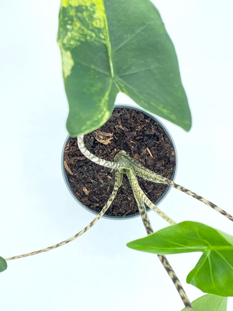 « Variegata » signifie une mutation chez la plante et lui confère un panachage unique. De ce fait, elle aura encore un peu plus besoin d’intention et d’une bonne exposition (attention, jamais derrière une fenêtre ou de plein soleil)