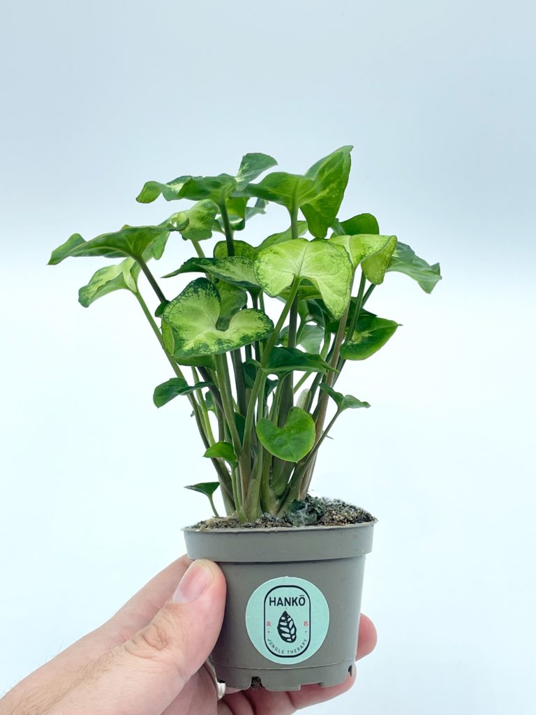 Le Syngonium Podophyllum ou encore Patte-d’oie est une plante grimpante ou retombante pouvant atteindre 2m en pot.